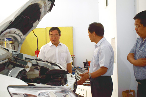 |             2016年6月28日上午,辛集市市長(zhǎng)田耀筠由辛集市政府辦公室主任韓樹(shù)峰、辛集鎮(zhèn)黨委書(shū)記王信凱、辛集鎮(zhèn)紀(jì)委書(shū)記趙立普等陪同,來(lái)我公司調(diào)研并指導(dǎo)工作。董事長(zhǎng)劉占查帶領(lǐng)導(dǎo)們參觀了公司的工作廳、產(chǎn)品展示廳、榮譽(yù)室、國(guó)超培訓(xùn)學(xué)校,介紹了公司的主營(yíng)業(yè)務(wù)及運(yùn)營(yíng)情況。田市長(zhǎng)對(duì)公司在汽車機(jī)械信息化技術(shù)研發(fā)領(lǐng)域做出的突出成績(jī)予以肯定,并勉勵(lì)公司繼續(xù)攻堅(jiān)克難,搞好科技創(chuàng)新,做出更好的業(yè)績(jī)。