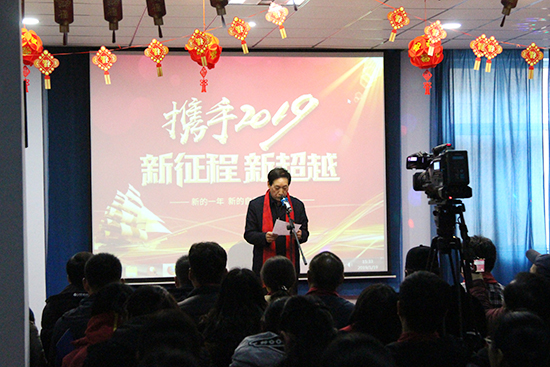 | 2019年新春佳節(jié)即將來(lái)臨之際,1月19日下午,公司舉辦“攜手2019 新征程 新超越”迎新春年會(huì)暨酒會(huì),與會(huì)嘉賓有:合資公司北京分公司的喬航副總經(jīng)理、李華峰部長(zhǎng)、張波室長(zhǎng)、袁川室長(zhǎng)、辛集市總商會(huì)謝忠生秘書(shū)長(zhǎng)、汽車(chē)專家李虎臣老師、自動(dòng)化工程專家楊廣鑫老師等。 年會(huì)節(jié)目豐富多彩,員工表演了歌曲、舞蹈、詩(shī)朗誦、大合唱等節(jié)目,年會(huì)上表演的節(jié)目均由公司員工自編自導(dǎo)自演,給在場(chǎng)觀眾帶來(lái)了一場(chǎng)精彩絕倫的視覺(jué)盛宴,與會(huì)嘉賓亦即興表演了精彩的節(jié)目,年會(huì)合資公司北京分公司喬航副總經(jīng)理演唱了歌曲《我們不一樣》,李華峰部長(zhǎng)演唱了歌曲《紅豆曲》,火龍先生演唱了歌曲《包青天》,任宗帥老師激情澎湃地朗誦了毛主席詩(shī)詞,整個(gè)會(huì)場(chǎng)充滿了熱情洋溢的節(jié)日氣氛。整個(gè)年會(huì)洋溢著歡笑、和諧、溫馨。這是一場(chǎng)歡樂(lè)的盛會(huì),不僅展示了全體員工朝氣蓬勃的風(fēng)貌,也展現(xiàn)了公司充滿活力的文化氛圍。 本次活動(dòng),每個(gè)人都身兼多職,但忙而不亂,主持人的完美搭詞、工作人員的有條不紊、參演員工的認(rèn)真敬業(yè)使本次年會(huì)取得了圓滿的成功。下午5時(shí)30分共進(jìn)酒宴,大家歡聲笑語(yǔ)共慶佳節(jié),舉杯暢飲展望未來(lái),共同迎接充滿生機(jī)和希望的2019年。
