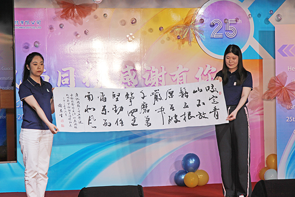 2025年6月5日,河北國超信息科技有限公司成立二十五周年慶典活動(dòng)在國超信息科技產(chǎn)業(yè)園隆重舉行。 參加此次活動(dòng)的有公司董事長劉占查、副董事長劉暢、總經(jīng)理曹艷爽、副總經(jīng)理張軍帥,以及公司各部門管理人員和全體員工。特別邀請了天津原中國人民解放軍第594團(tuán)團(tuán)長、后任天津市一輕局局長劉秋滿同志;原政委楊憲行同志;戰(zhàn)友王勇,王連振同志。還有特意從廣州和北京趕來的合資公司木村勇治總經(jīng)理,中野哲彥副總經(jīng)理、土屋光春總經(jīng)理,天津的楊廣鑫老師。還有劉總的部分老同學(xué),老同事,老戰(zhàn)友。 回望過去25 年,國超公司經(jīng)歷了從無到有、從小到大的蛻變,從最初的小團(tuán)隊(duì),到如今眾多精英的大家庭。每一步都凝聚著汗水和智慧,每一次跨越都見證了國超人的勇氣和決心。目前已發(fā)展成為具有兩個(gè)中日合資公司,12個(gè)子公司,一個(gè)職業(yè)培訓(xùn)學(xué)校和6個(gè)辦事處的大數(shù)據(jù)研發(fā)制造集團(tuán)企業(yè)。被省市各級政府確定為各類高技能人才實(shí)訓(xùn)基地和安全生產(chǎn)實(shí)訓(xùn)基地,各類作業(yè)人員培訓(xùn)機(jī)構(gòu)考試點(diǎn)和考試認(rèn)定機(jī)構(gòu),已被河北師范大學(xué)、河北科技大學(xué)等多所大學(xué)確定為教育教學(xué)實(shí)習(xí)基地,是國家高新技術(shù)企業(yè),國家軟件企業(yè)和省服務(wù)外包企業(yè)。 出席此次二十五周年慶典活動(dòng)的二百多名公司的同仁以及嘉賓,共同為公司二十五周歲生日歡呼慶祝,共同分享這份喜悅和精彩。 本次周年慶典為期半天,下午15點(diǎn)16分,周年慶典正式開始。公司董事長劉占查、副總經(jīng)理張軍帥分別為慶典發(fā)表了熱情洋溢的致辭,中層領(lǐng)導(dǎo)及部分員工代表也分別發(fā)言,闡述了在公司的奮斗歷程,表達(dá)了公司全體員工堅(jiān)定信念,不斷進(jìn)取,為實(shí)現(xiàn)百年國超的目標(biāo)而努力奮斗的信心和決心。期間播放了公司精心制作的宣傳片、二十五周年發(fā)展歷程紀(jì)錄片。慶典上,總經(jīng)理曹艷爽表彰了在公司工作21周年以上的員工,他們愛崗敬業(yè)、勇于擔(dān)當(dāng)、貢獻(xiàn)卓著,是大家學(xué)習(xí)的榜樣。在熱烈的掌聲中,曹總經(jīng)理為這些員工頒發(fā)了榮譽(yù)勛章。大家在輕松歡樂的氣氛中分享了美味的25周年生日蛋糕,員工表演了豐富多彩的文藝節(jié)目。慶典現(xiàn)場歡歌笑語,體現(xiàn)了“風(fēng)雨同行 感謝有你”的主題,其樂融融。合資公司為公司二十五周年贈(zèng)送了精美的紀(jì)念品,與會(huì)嘉賓特地為這個(gè)特殊的日子獻(xiàn)上了珍貴的書法墨寶,表達(dá)了對公司二十五年奮斗歷程的贊譽(yù)和未來大展宏圖的祝福;全體員工和與會(huì)嘉賓拍下全家福,用鏡頭記錄下了難忘而美好的一天。慶典活動(dòng)最后,全體員工及與會(huì)嘉賓共進(jìn)晚宴。 “銘記廿五載輝煌,不忘初心來時(shí)路;共繪新時(shí)代藍(lán)圖,砥礪奮進(jìn)新征程!”公司二十五周年慶典活動(dòng)是公司發(fā)展歷程的重要里程碑。我們堅(jiān)信,在未來的日子里,公司將繼續(xù)傳承企業(yè)文化,始終堅(jiān)持“賦予信息以高質(zhì)量”的企業(yè)理念和“高質(zhì)量、快速度、低成本、客戶滿意”的經(jīng)營方針,始終堅(jiān)持“誠實(shí)、努力、虛心”的用人原則,始終堅(jiān)持“讓創(chuàng)新像呼吸一樣習(xí)慣”的企業(yè)精神和“信譽(yù)如山”的企業(yè)信念,全體員工要心往一處想,勁往一塊使,齊心協(xié)力,團(tuán)結(jié)一致,為客戶提供更加優(yōu)質(zhì)的服務(wù),共同譜寫更加輝煌的新篇章。