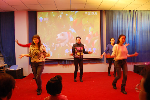 年會(huì)在激情洋溢的歌曲----國(guó)歌《義勇軍進(jìn)行曲》和公司司歌《國(guó)超之歌》中拉開(kāi)帷幕。年會(huì)有中外文歌曲、精彩的游戲、抽獎(jiǎng)、絕活、舞蹈等節(jié)目,營(yíng)造出歡樂(lè)祥和的節(jié)日氣氛,員工的精彩表演贏得滿場(chǎng)陣陣喝彩。