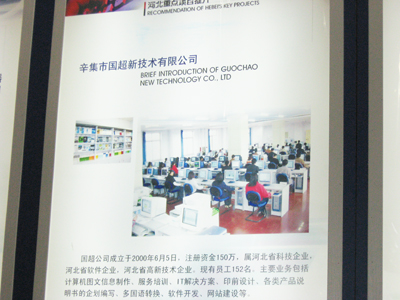 2008年6月18日-22日,公司董事長劉占查及軟件開發(fā)部主任一行4人參加了第六屆中國國際軟件和信息服務(wù)交易會。會議期間共與國際國內(nèi)數(shù)十家企業(yè)進(jìn)行業(yè)務(wù)洽談,并與多家企業(yè)達(dá)成了合作意向。