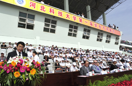 | 22日上午9時(shí)河北科技大學(xué)第一屆學(xué)生節(jié)開幕式在新校區(qū)主體育場隆重舉行,河北省委副書記付志方出席開幕式并宣布學(xué)生節(jié)開幕,省人大副主任馬蘭翠,政協(xié)副主席王剛及國家教育部,中國城市規(guī)則設(shè)計(jì)研究院,河北省國資委教育廳、文化廳、省考試院的主要領(lǐng)導(dǎo)在主席臺(tái)前臺(tái)就座,開幕式由河北科技大學(xué)黨委書記衛(wèi)舸主持。校長李強(qiáng)代表高校黨政領(lǐng)導(dǎo)班子致歡迎詞。 我公司做為河北科技大學(xué)的教育教學(xué)實(shí)習(xí)基地,公司總經(jīng)理劉占查應(yīng)邀參加了開幕式,并在主席臺(tái)就座。上午10點(diǎn)30分公司總經(jīng)理參加了大學(xué)組織的企業(yè)家座談會(huì),就今后加強(qiáng)校企進(jìn)一步合作、共謀發(fā)展與高校領(lǐng)導(dǎo)進(jìn)行了坦誠友好的交流。