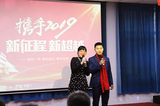 | 2019年新春佳節(jié)即將來(lái)臨之際,1月19日下午,公司舉辦“攜手2019 新征程 新超越”迎新春年會(huì)暨酒會(huì),與會(huì)嘉賓有:合資公司北京分公司的喬航副總經(jīng)理、李華峰部長(zhǎng)、張波室長(zhǎng)、袁川室長(zhǎng)、辛集市總商會(huì)謝忠生秘書(shū)長(zhǎng)、汽車(chē)專家李虎臣老師、自動(dòng)化工程專家楊廣鑫老師等。 年會(huì)節(jié)目豐富多彩,員工表演了歌曲、舞蹈、詩(shī)朗誦、大合唱等節(jié)目,年會(huì)上表演的節(jié)目均由公司員工自編自導(dǎo)自演,給在場(chǎng)觀眾帶來(lái)了一場(chǎng)精彩絕倫的視覺(jué)盛宴,與會(huì)嘉賓亦即興表演了精彩的節(jié)目,年會(huì)合資公司北京分公司喬航副總經(jīng)理演唱了歌曲《我們不一樣》,李華峰部長(zhǎng)演唱了歌曲《紅豆曲》,火龍先生演唱了歌曲《包青天》,任宗帥老師激情澎湃地朗誦了毛主席詩(shī)詞,整個(gè)會(huì)場(chǎng)充滿了熱情洋溢的節(jié)日氣氛。整個(gè)年會(huì)洋溢著歡笑、和諧、溫馨。這是一場(chǎng)歡樂(lè)的盛會(huì),不僅展示了全體員工朝氣蓬勃的風(fēng)貌,也展現(xiàn)了公司充滿活力的文化氛圍。 本次活動(dòng),每個(gè)人都身兼多職,但忙而不亂,主持人的完美搭詞、工作人員的有條不紊、參演員工的認(rèn)真敬業(yè)使本次年會(huì)取得了圓滿的成功。下午5時(shí)30分共進(jìn)酒宴,大家歡聲笑語(yǔ)共慶佳節(jié),舉杯暢飲展望未來(lái),共同迎接充滿生機(jī)和希望的2019年。