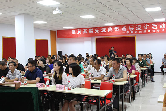 | 2019年6月25日上午,“善行河北 德潤燕趙”先進(jìn)典型基層巡講活動(dòng) 辛集市國超公司專場在我公司舉辦。本次活動(dòng)由河北省文明辦主辦,辛集市文明辦、鹿城辦事處承辦,地點(diǎn)在我公司一樓多功能會(huì)議廳。出席活動(dòng)的領(lǐng)導(dǎo)有:辛集市文明辦主任曹磊、鹿城辦事處主任王書軍等。我公司總經(jīng)理曹艷爽、工會(huì)主席尚躍華帶領(lǐng)公司員工代表、鹿城辦事處代表共計(jì)100余人聆聽了報(bào)告。 鹿城辦事處主任王書軍指出,道德模范、身邊好人等先進(jìn)典型是有形的正能量,是鮮活的價(jià)值觀。各單位領(lǐng)導(dǎo)和同志要以他們?yōu)榘駱,向道德模范學(xué)習(xí),進(jìn)一步推動(dòng)文明素質(zhì)的整體提升,人人參與創(chuàng)建、人人支持創(chuàng)建,為全市精神文明建設(shè)貢獻(xiàn)力量。 活動(dòng)現(xiàn)場,中國好人、河北好人、河北省最美退伍兵、中國人民銀行衡水市中心支行科員郝宏銀,堅(jiān)持42年幫老人、執(zhí)勤值班官兵和住校孩子們免費(fèi)理發(fā)、對患絕癥卻無錢看病的戰(zhàn)友提供經(jīng)濟(jì)援助!瓣柟馀ⅰ睏顣(huì)芳,從小就擔(dān)負(fù)起照顧全家人的重?fù)?dān),她沒有向命運(yùn)低頭,用不懈的拼搏和努力追逐著夢想,換來了人生的一縷陽光。河北省優(yōu)秀志愿者、邢臺(tái)公益服務(wù)協(xié)會(huì)秘書長、邢臺(tái)市林璋茶葉貿(mào)易有限公司負(fù)責(zé)人韓林璋,組建規(guī)范助學(xué)團(tuán)隊(duì)、策劃“揚(yáng)帆護(hù)航~陽光助學(xué)”“笑臉計(jì)劃”等志愿服務(wù)活動(dòng),致力于公益事業(yè)。辛集市馬長青中醫(yī)診所中藥藥劑師馬小杰,多次組織參與志愿行動(dòng)、資助貧困家庭孩子上學(xué)、聯(lián)系外國友人連續(xù)兩年資助18個(gè)因大病返貧家庭。他們用質(zhì)樸無華的語言、真摯細(xì)膩的感情進(jìn)行了講述,一個(gè)個(gè)溫暖故事、一件件平凡善舉令在場的聽眾深受感動(dòng),贏得了現(xiàn)場觀眾陣陣掌聲。大家表示,一定要學(xué)習(xí)他們對于公益活動(dòng)的執(zhí)著、堅(jiān)守和情懷,關(guān)心社會(huì),奉獻(xiàn)愛心。巡講會(huì)獲得圓滿成功。