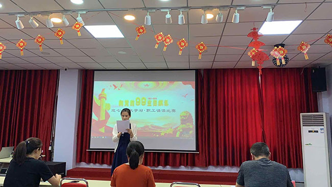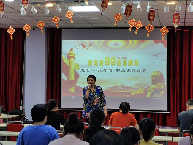 | 根據(jù)《河北省總工會辦公室關(guān)于開辦“大學(xué)習(xí)”課堂 建立職工讀書小組深化開展學(xué)習(xí)習(xí)近平新時代中國特色社會主義思想職工誦讀活動的意見》,在市總工會的關(guān)心和指導(dǎo)下,我公司工會于2020年6月15日召開會議,組成以各部門負(fù)責(zé)人為領(lǐng)讀人的職工讀書小組,為深化開展職工誦讀活動,部署舉辦 “向黨的99歲生日獻禮 迎七一 大學(xué)習(xí) 職工誦讀比賽”。6月20日下午40余名職工參加了誦讀初賽, 17名職工脫穎而出,參加了6月23日的復(fù)賽,公司職工強紅、劉彤、鄧贊分別榮獲本次比賽的前三名。公司工會為獲獎?wù)呒皡⒓颖荣惵毠し謩e頒發(fā)了榮譽證書和紀(jì)念品。 通過開展學(xué)習(xí)習(xí)近平新時代中國特色社會主義思想職工誦讀活動,進一步推進習(xí)近平新時代中國特色社會主義思想進企業(yè)、進車間、進班組,真正做到入腦入心,達(dá)到了進一步引導(dǎo)職工增強“四個意識”、堅定“四個自信”、做到“兩個維護”、把加強職工思想政治引領(lǐng)的責(zé)任落實落細(xì)落地的效果。