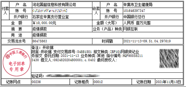 2021年11月13日,我公司捐款10000元,支援抗疫